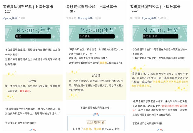 微信平台推出《考研复试调剂经验|上岸分享卡》系列推送