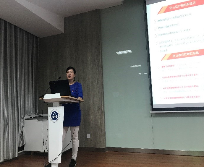 2020级研究生新生党支部构成进行了介绍,并着重从党支部的职责定位和工作原则角度,要求党支部严格落实“三会一课”等各项制度,完成党支部组织生活基本任务。此外,她还详解了发展党员工作注意事项,梳理了党员发展流程,鼓励学生党员积极为身边有入党意愿的同学提供引导和帮助。